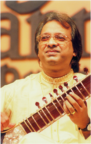 His sitar recitals sparkle with intense melodiousness and rich delineations, bringing out the depth and the true spirit of the raga. His judicious balance of the gayaki (vocalisation) and the tantrakari (instrumentation) elements reveal his unswerving focus on musical form and beauty. His formidable tabla solos drawn from an enviable repertoire of the Farukhabad, Delhi, Ajrada, Lucknow and Punjab schools and his eloquent and mesmerising accompaniments have won him a strong stamp of recognition as a blue-blooded tabla player.